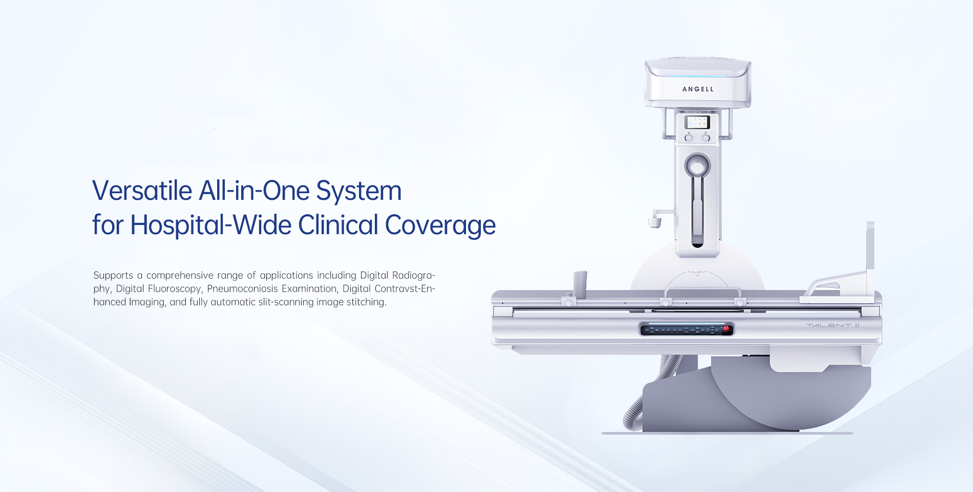Supports a comprehensive range of applications including Digital Radiography, Digital Fluoroscopy, Pneumoconiosis Examination, Digital Contrast-Enhanced Imaging, and fully automatic slit-scanning image stitching.