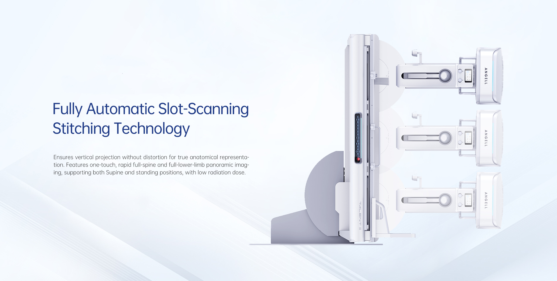 Ensures vertical projection without distortion for true anatomical representation. Features one-touch, rapid full-spine and full-lower-limb panoramic imaging, supporting both recumbent and standing positions, with low radiation dose.