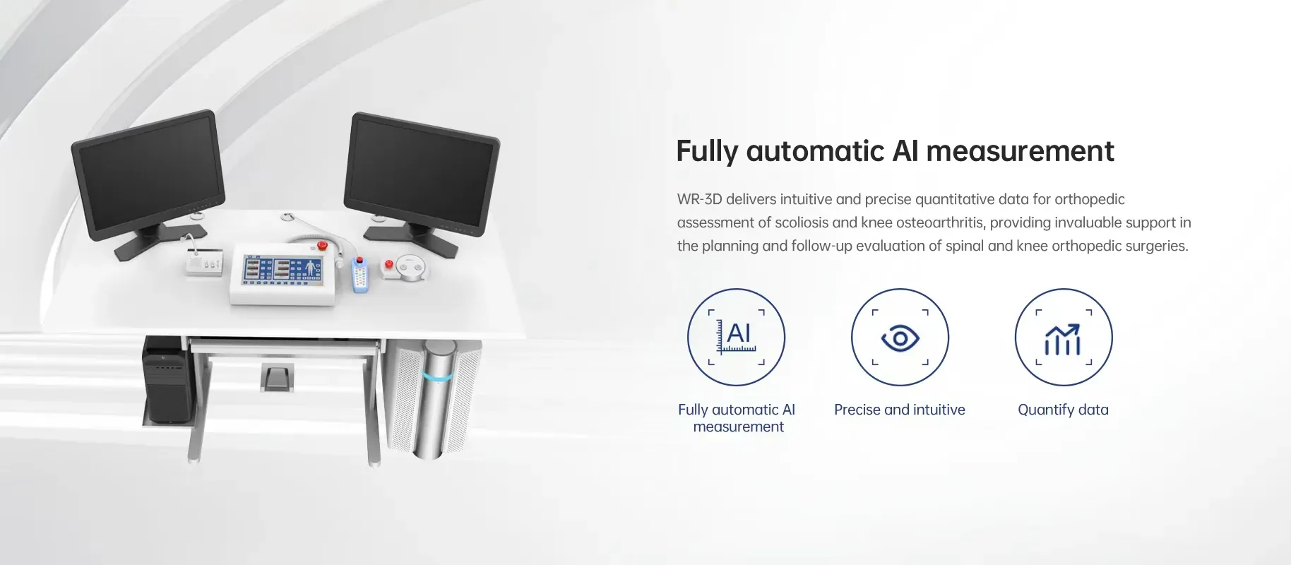 WR-3D delivers intuitive and precise quantitative data for orthopedic assessment of scoliosis and knee osteoarthritis, providing invaluable support in the planning and follow-up evaluation of spinal and knee orthopedic surgeries.