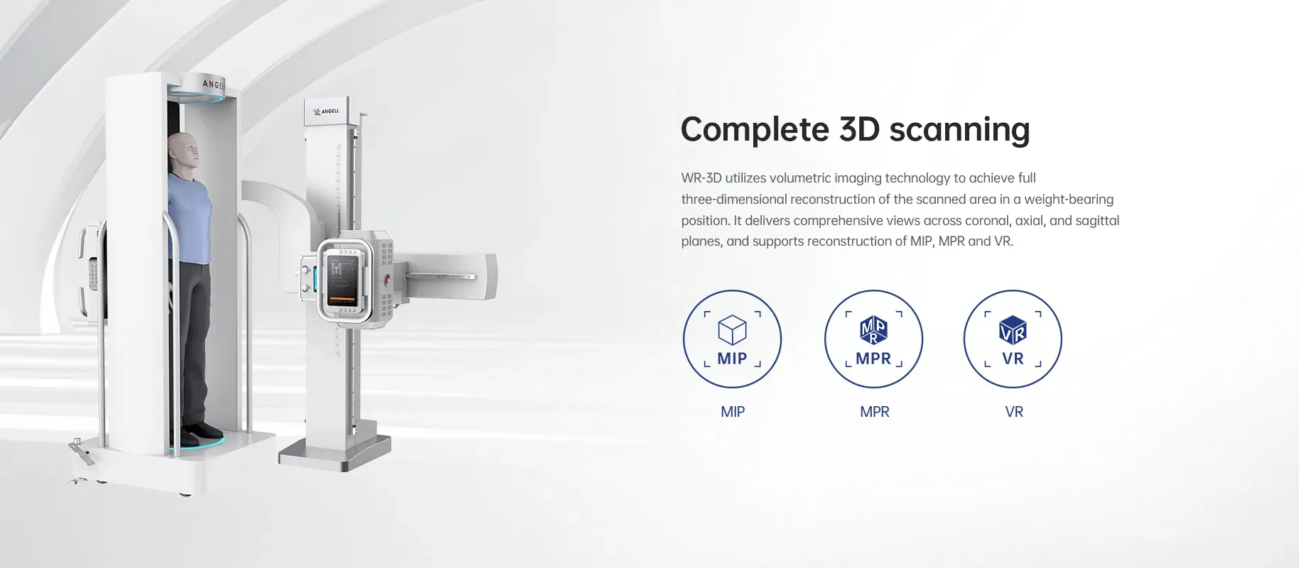 WR-3D utilizes volumetric imaging technology to achieve full three-dimensional reconstruction of the scanned area in a weight-bearing position. It delivers comprehensive views across coronal, axial, and sagittal planes, and supports reconstruction of MIP, MPR and VR.